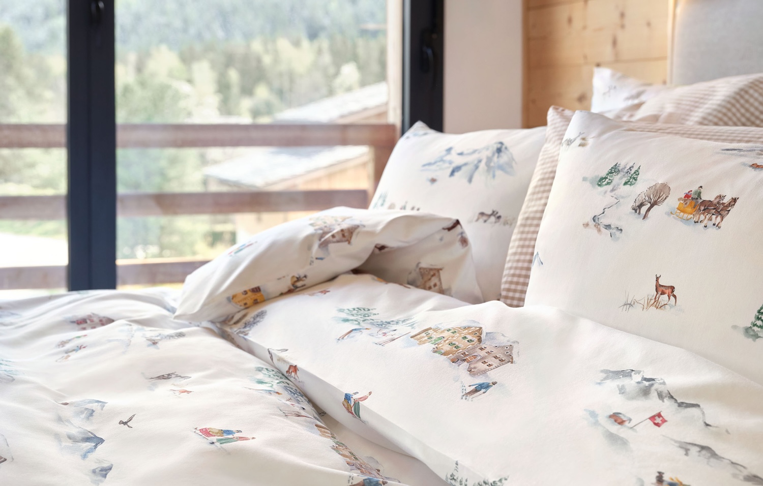 Schlossberg textiel combineert Zwitserse precisie met artistiek design en ultiem comfort. Met luxueuze materialen en handgeschilderde prints brengt het merk stijl en verfijning in je slaapkamer