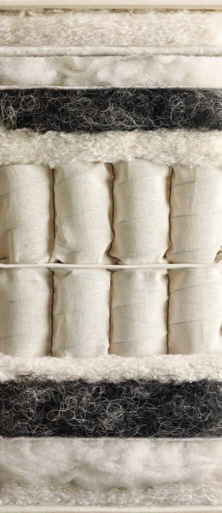 • Exclusieve natuurlijke vullingen: mix van Platinum gecertificeerde echte Shetland wol en katoen (900 gr/m2), met de hand ontrafeld Moosburger paardenhaar (450 gr/m2), met de hand gekaarde Platinum gecertificeerde echte Shetland wol ( 600 gr/m2) gemengd met kasjmier (200 gr/m2), mix van Platinum gecertificeerde echte Shetland wol en katoen (900 gr/m2)