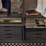 Senzafine is een modern en modulair (inloop)kastenprogramma van Poliform, dat aan iedere ruimte aangepast kan worden. De inloopkast wordt gekarakteriseerd door wanden van 3,5 cm dik die een solide uitstraling geven aan de vormen en geometrie van de kast. Van eenvoudige of minimalistische deuren tot een deur met meer specifieke esthetische kenmerken, met profielen of lijsten, u hebt de keuze uit draai-, vouw- of schuifdeuren.