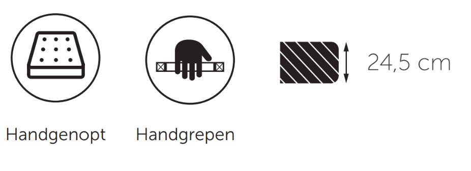 • Interieur: 7-zone interactive pocketvering met 3cm Megapur® koudschuim afdekking • Comfort: medium of stevig • Tijk: Luxe dubbeldoek, doorstikt met 200 gram antiallergische watten en comfortschuim • Bijzonderheden: Handgenopt afgewerkt, 6 horizontale handgrepen