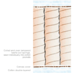 Aan de onderzijde van de latex bevindt zich een dubbele laag katoen voor extra stabiliteit, gevolgd door een drukverdeler van canvasdoek. Opmerkelijk is dat deze drukverdeler niet verlijmd is, waardoor het geheel meer flexibiliteit en aanpassingsvermogen behoudt. Dit past volledig binnen Schramms filosofie van een natuurlijk, ademend en dynamisch slaapsysteem.