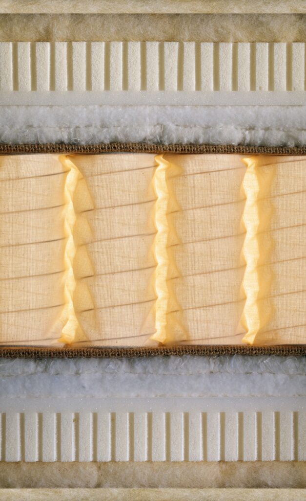 Wat de Schramm Heaven onderscheidt, is de bijzondere manier waarop de matras is opgebouwd. De pocketveren zijn verdeeld in zones met vloeiend krachtverloop, waarbij verschillende veersterktes naadloos in elkaar overgaan over de lengte van de matras. Hierdoor past de matras zich perfect aan het lichaam aan, met gerichte ondersteuning op de juiste plaatsen – zoals schouders, heupen en onderrug. Dit bevordert niet alleen een natuurlijke lichaamshouding tijdens het slapen, maar voorkomt ook drukpunten en onrustig draaien.